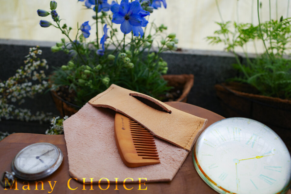 革のカシミヤ・ディアスキンのつげ櫛ケース(無染色)