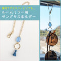 【天然石とタッセルのルームミラー用サングラスホルダー/アクアマリン】車用 眼鏡ホルダー 車内アクセサリー インテリア