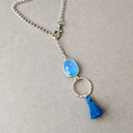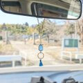 天然石『アクアマリン』のフレームストーンに、ブルーのタッセルが揺らめくデザインは、今までのカーアクセサリーにはあるようでなかった上品なデザイン。