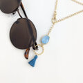 チャーム部分の中央に配したメタルリングに、お手持ちのサングラスや眼鏡を引っかけてお使いいただけます。