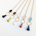 【天然石とタッセルのルームミラー用サングラスホルダー/オニキス】