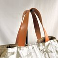 落ち着いたベージュ系のカラーに、ブラウンの持ち手を組み合わせることで、大人っぽく上品な雰囲気に仕上げました。