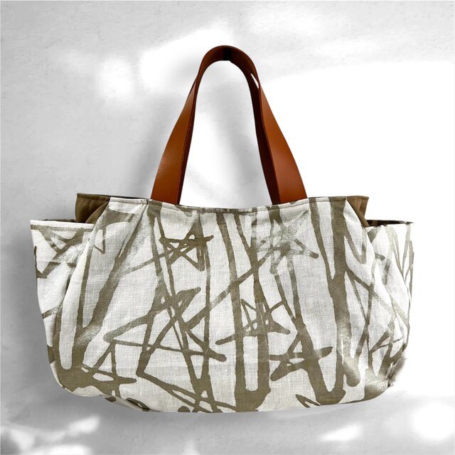 ナチュラルな風合いの生地に、印象的なアート柄を合わせたトートバッグです。