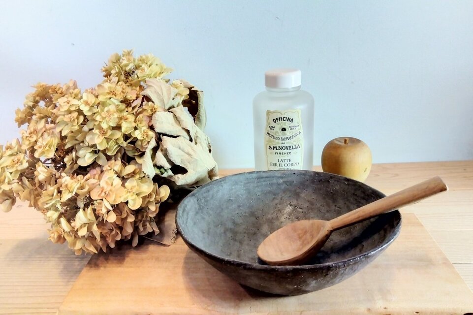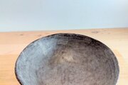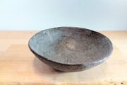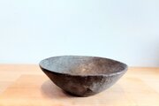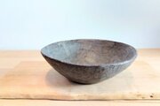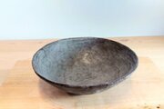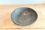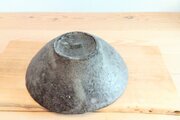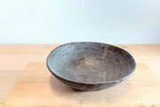 ぶどうの木の灰釉鉢。ちょっとイビツな丸い形。荒い土の削りあとや灰釉の濃淡も鉢の景色を作り出しています。深さもあるので煮物を盛ったり、シチューなどの汁物もOK。ごはんの上におかずでどんぶりモノ的な使い方もいいですね☆