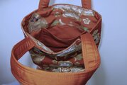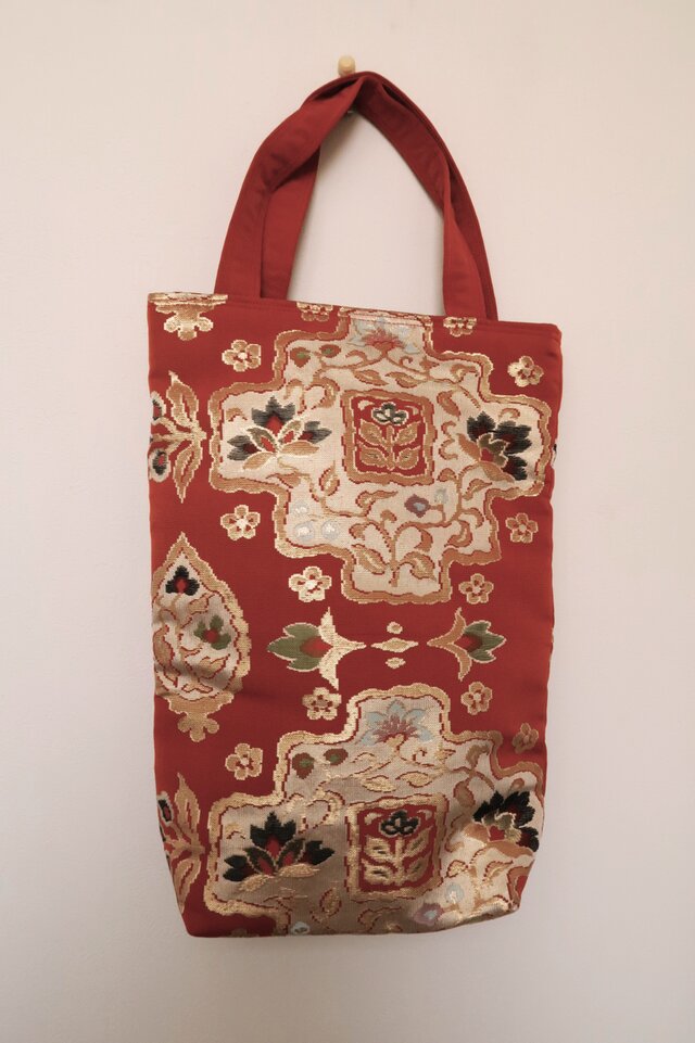 新しい正絹の帯から作った、A4サイズの入るトートバッグです。