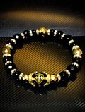 金色 盾 十字架 彫り オニキス 約12㎜