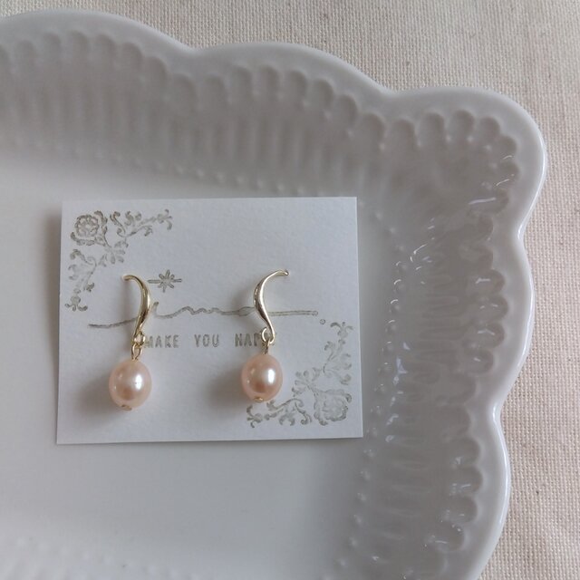 14kgf サーモンピンクカラー淡水パールの1粒ピアス