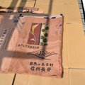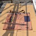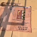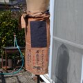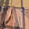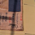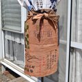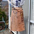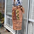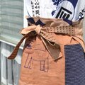 懐かしい絵柄の手ぬぐいを柿渋染めをして、エプロンを作りました。
