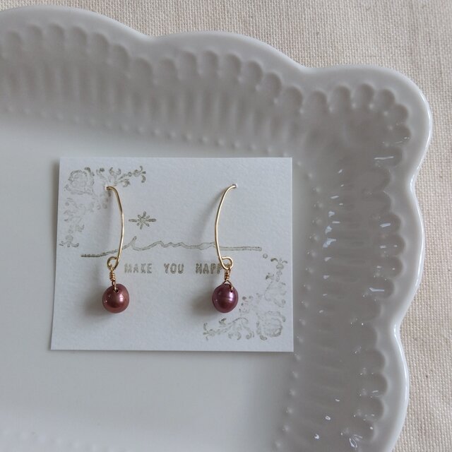 14kgf モーヴカラー淡水パールの1粒ピアス