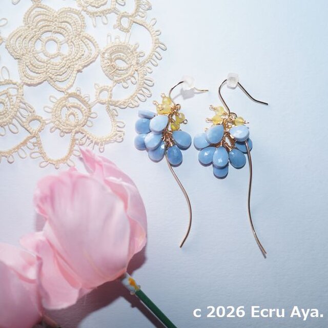 #Ecru #天然石 #イヤリング #ピアス #ブルーオパール #オパール #イエロー #勿忘草 #春 #Ecru_春 #Ecru_新作