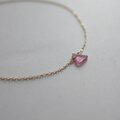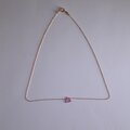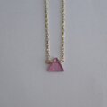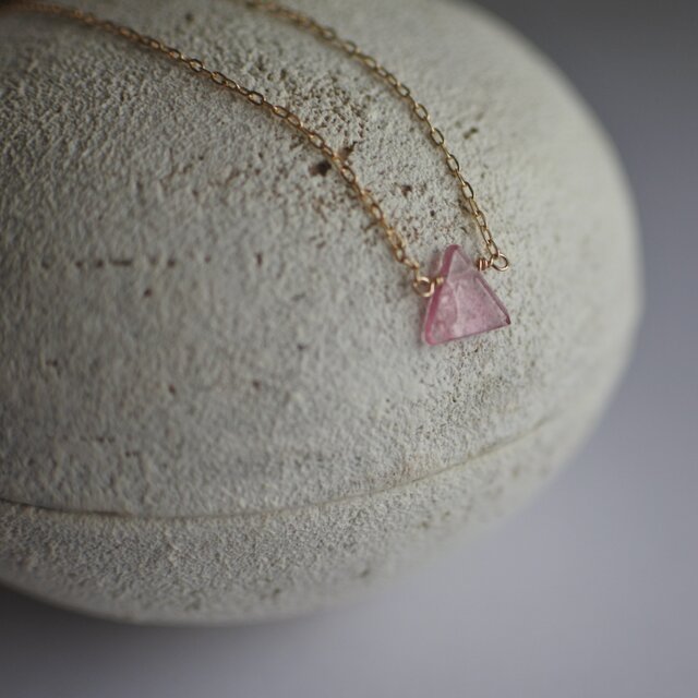 少し個性的な三角形のピンクトルマリンに、小さなオレンジサファイアを添えたネックレス。