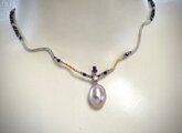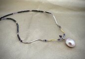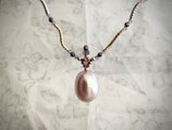 素材:淡水真珠10.5㎜、アメジスト、ヘマタイト、SV、真鍮