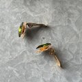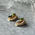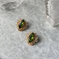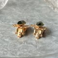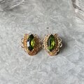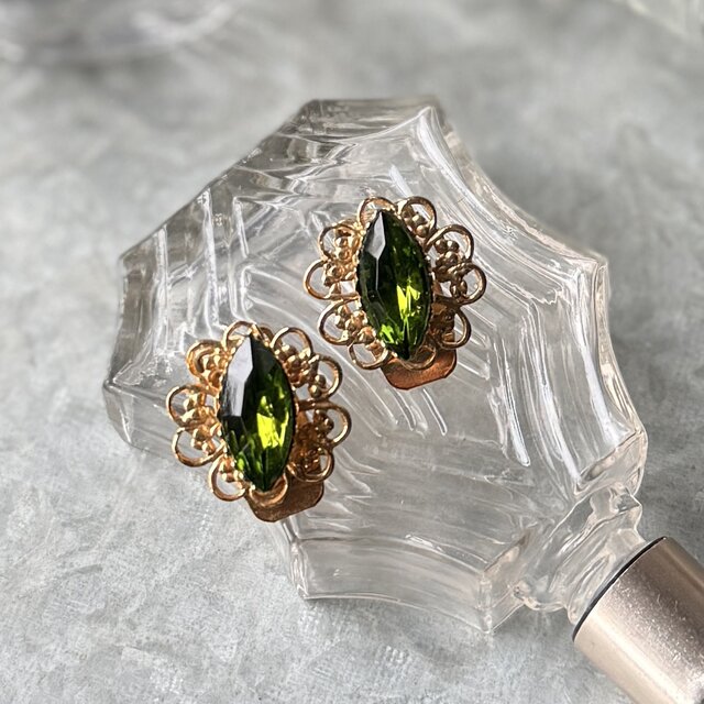 マーキスカットされたオリーブグリーンのグラスが美しい、ゴールドトーンイヤリング。
