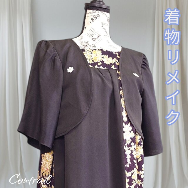 d114 3Lサイズ ワンピース&ボレロ セットアップ ボートネックタイプ 着物リメイク 小紋リメイク