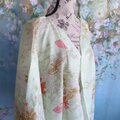 大切に着られていた洗える着物(ポリエステルまたは洗える正絹調生地)を丁寧に解き、贅沢に一枚布として蘇らせたモモンガコートです。