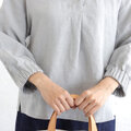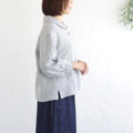 大人の抜け感 桐七炊きリネン ショールカラーブラウス 体型カバーに(グレー)TP02