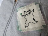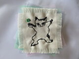 キャンバス地に刺繍をしてチュールと組み合わせたワッペン状のブローチです。