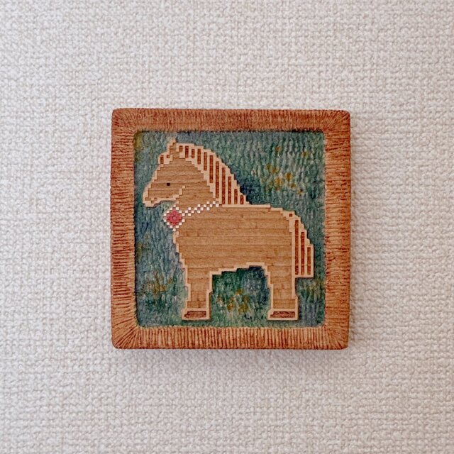 【受注制作】午年 馬の木彫り壁掛け / 干支・ドット絵・ハンドメイド