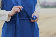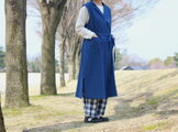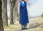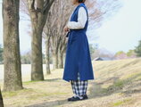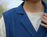 職人さんの美しい手仕事、藍染の布で仕立てた襟付きジレワンピース。