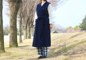 藍染(備後節織・濃紺)の襟付きジレワンピース | カシュクール2way(エプロン・羽織り)