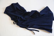 ※商品写真ではポケットに収めていますが、穴に通して後ろで結ぶスタイルが、よりシルエットが綺麗に見えておすすめです。