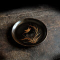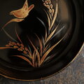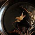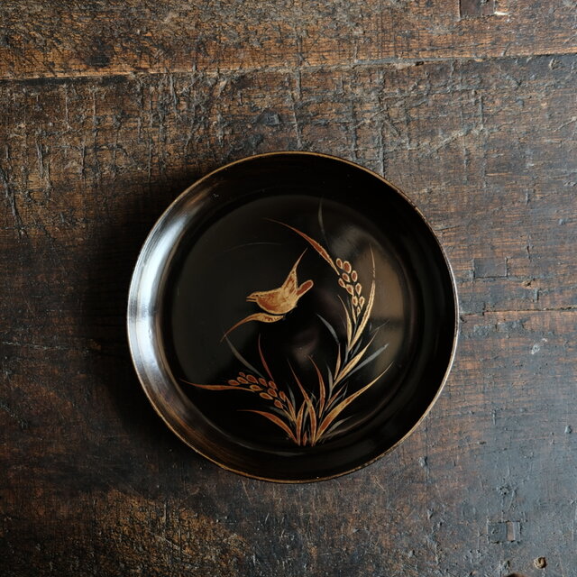 【特価¥1500→¥950】鳥と稲穂◆味のあるお品物。時代物 漆芸蒔絵中皿 漆器 骨董/antiques 明治期【個体B】