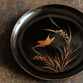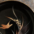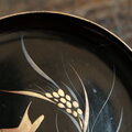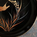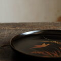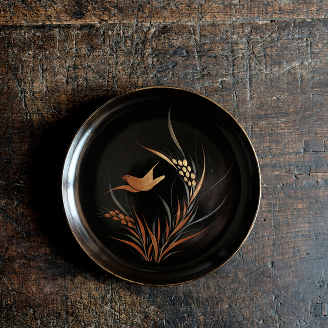 【特価¥1500→¥950】鳥と稲穂◆味のあるお品物。時代物 漆芸蒔絵中皿 漆器 骨董/antiques 明治期【個体D】