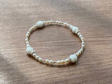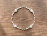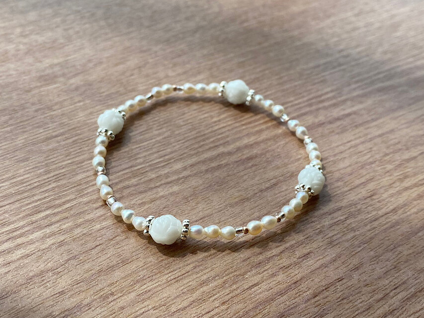 ホワイトローズのヴィンテージビーズを中心に、淡水パールとシルバービーズを合わせたブレスレット。