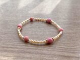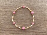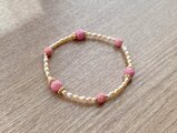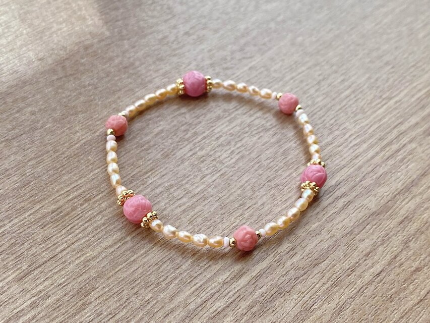 ピンクローズのヴィンテージビーズと淡水パールを合わせた、やさしい色合いのブレスレット。