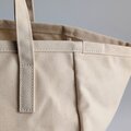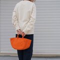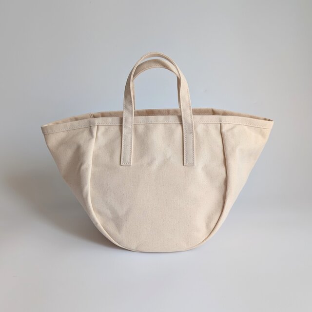 帆布バッグではあまり見かけない、丸いシルエットが特徴のトートバッグです。