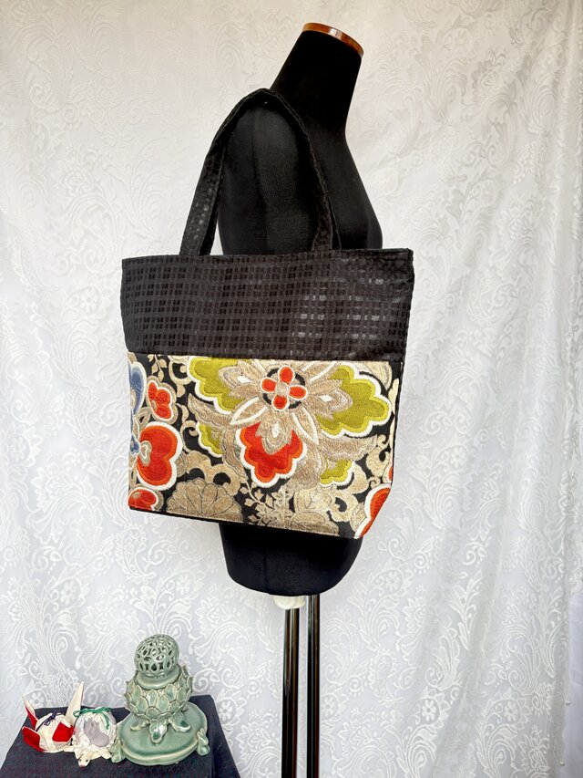 袋帯をリメイクいたしました大きめトートバックです。