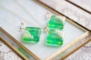 レジンアート スクエアピアス〈寄り添う若木〉