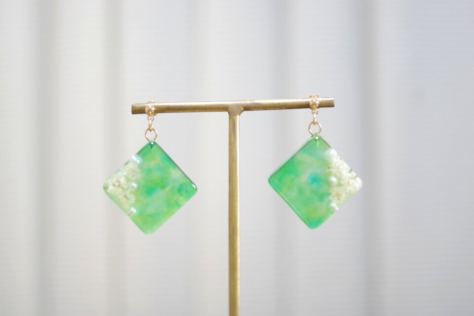 レジンでスクエアピアスを作りました♪