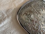 花模様が何ともレトロで美しくなっております。重量感もありしっかりしてます。鏡の面はくすみなど比較的少ないです。お部屋をアンティークに彩るディスプレイや、実使用としてまだまだお使いいただけるかと思います。