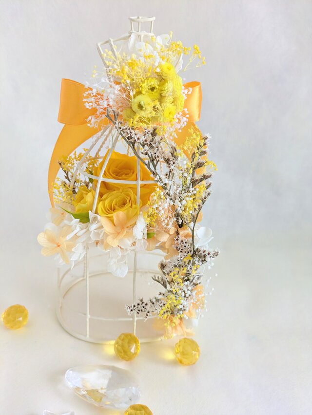 プリザーブドフラワー/黄色の薔薇のフラワードレスのトルソー