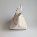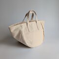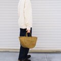 帆布バッグではあまり見かけない、丸いシルエットが特徴のトートバッグです。