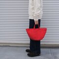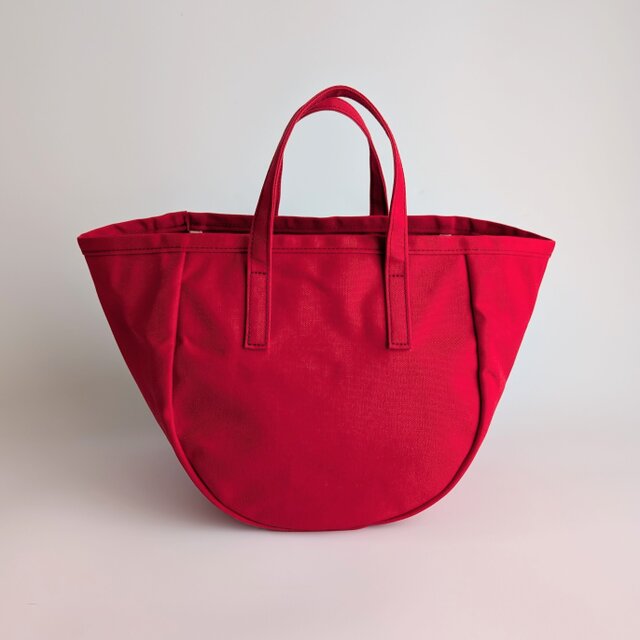 帆布バッグではあまり見かけない、丸いシルエットが特徴のトートバッグです。