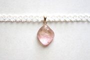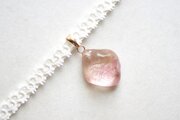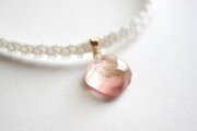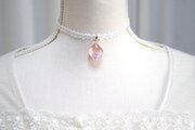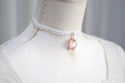 二種類のピンクが作る水面をのぞき込んだような、うららかなカラーリングのレジンを、サテンリボンにタティングレースで装飾を施したチョーカーに仕上げました。