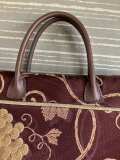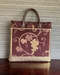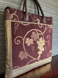 葡萄唐草模様の名古屋帯の手提げ 本革の手
