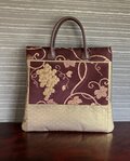 葡萄唐草の名古屋帯を手提にしました。手は本革の手を手縫いで付けました。