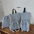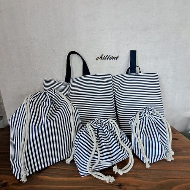 ネイビーストライプの素敵な入園バッグ5点セットが出来上がりました!