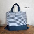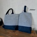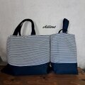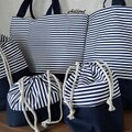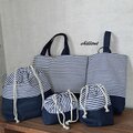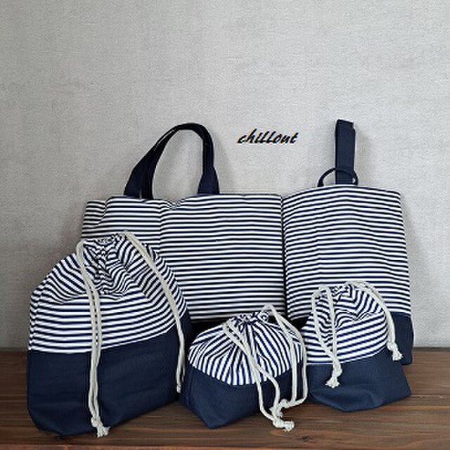 ネイビーストライプ×ネイビーの切替の素敵な入園バッグ5点セットが出来上がりました!
