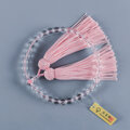 本水晶 共仕立 親桜彫 片手数珠 念珠 京都手作り さくら 櫻 天然石 JUA157