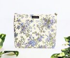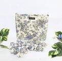 ベージュ地にライラックブルー色の小花柄綿タナローン生地を使用しています。