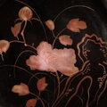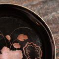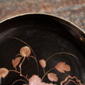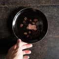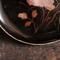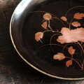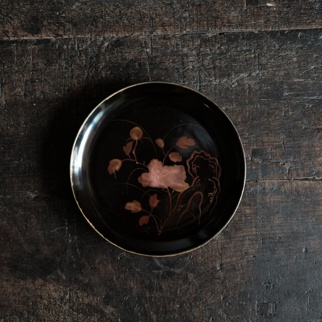 【特価¥2200→¥1100】耽美で素敵◆岩場に花。時代物 花文漆芸蒔絵中皿 古漆器 骨董/antiques 明治時代 i2
