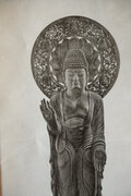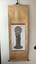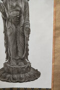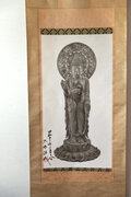 【特価¥4400→¥2200】観音像の掛け軸◆昭和期 インテリア 仏教美術 古民家 レトロ  花唐草 プリント・転写