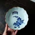 早々の発送をありがとうございました。 明治期の中皿、薄い藍、絵付けが個性的で和洋どちらにでも使えそうで嬉しいです。 高台に縦縞の模様あり、鍋島焼きかなと思ったりしております。
