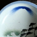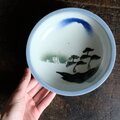 【¥1000→¥500】松と船と富士の山◆瀬戸焼 吹き染め中鉢 骨董・antiques 大正~昭和初期【縁に削げ】