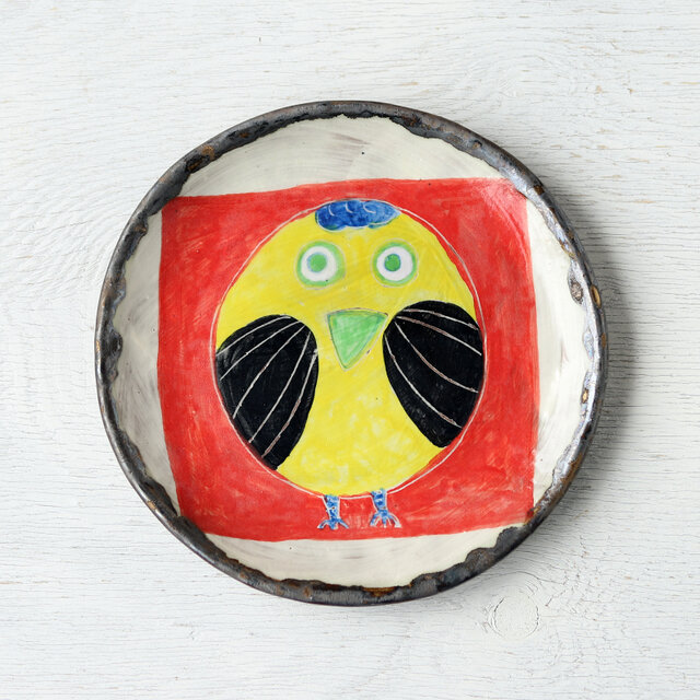 小鳥の歌シリーズ(黄色い鳥)・手描き絵皿