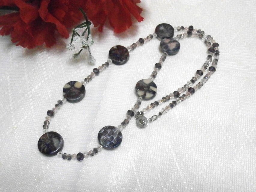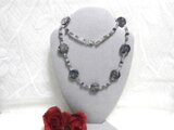 ・クレイビーズの片面にお花模様をシルバーのメタリックパウダーで施しました。